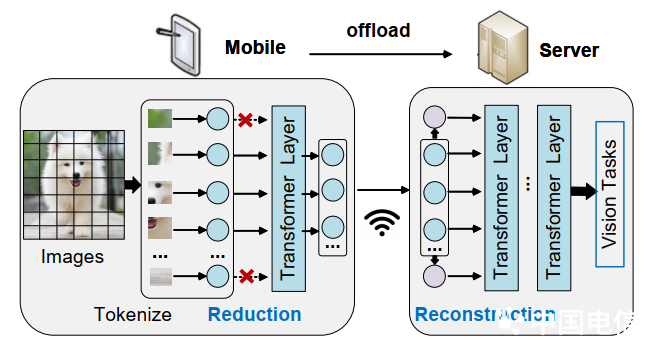 针对上述痛点,该论文提出Mercury框架,构建“移动端高效修剪,云端轻量重构”的端云协同新范式。其核心创新包括:一是相似性驱动的区域分散token修剪技术,在移动端ViT初始层单轮大规模修剪,仅保留各图像区域语义代表性最强的token,减轻端侧负担;二是元参数驱动的低开销token重构技术,在云端以轻量化方式恢复语义特征,避免引入复杂开销。